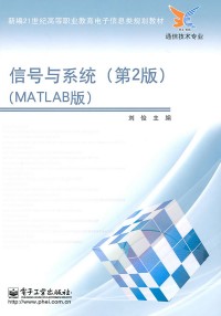 简介: 本书针对高等职业教育的特点,根据教育部制定的《高职高专教育专门 课课程基本要求》及高等职业教育电子信息类教材编审委员会制定的教学计 划,结合多年来高等职业教育的实践经验编写而成。本书内容包括:信号与 系统概述、连续时间信号分析、连续时间系统分析、离散时间信号分析、离 散时间系统分析,并基于MATLAB工具软件对每部分内容进行详细、深入的探 讨。 本书在结构编排上自成一体,精选内容,加强基础,适当淡化理论,尤 其是试图引导读者借助MATLAB工具软件理解信号与系统的抽象概念,强调信 号与系统相关理论的应用。 本书可作为高职高专电子信息类相关专业“信号与系统”课程的教材, 也可作为相关专业工程技术人员的自学参考书。