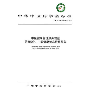 简介:《中华中医药学会标准·中医健康管理服务规范第4部分:中医健康状态跟踪服务(T/CACM 006/4-2016)》为《中医健康管理服务规范》的第4部分。本部分由中华中医药学会提出并归口。本部分起草单位:中华中医药学会、湖南中医药大学。本部分主要起草人:洪净、何清湖、孙贵香、张冀东、陈燕、刘旺华、刘倩倩、刘琦、龚兆红、杨玉芳、倪佳、向岁、曾庆佳。本标准技术顾问(按姓氏笔画排序):王琦、孙光荣、张伯礼。