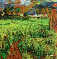 20世纪60年代初崛起的江苏画家,以傅抱石、钱松函、、亚明、宋文治、魏紫熙等为代表,一手伸向生活,一手伸向传统,又不露痕迹地吸收西方某些画法,创作出一批既富时代气息,又有民族特色的新山水画,形成了“新金陵画派”的一支劲旅。在20 世纪后半叶的画史上,它与长安画派、新浙派一起,承担了社会转折期中国画变革的历史使命,推动了中国山水画由传统走向现代的进程。目前“新金陵画派”的传人已至第二代、第三代,仍不乏后起之秀,在继续发展中。汀苏籍画家高寅是宋文治之子宋玉麟先生的人室弟子,可谓“新金陵画派”第三代传人。在宋玉麟先生十多年的言传身教之下,高寅经过二十多年的不断探索,继承了新余陵画派师辈们清秀明艳、典雅润泽、文气甚浓的画风。在他的作品中,清新的生活气息与灵性的笔墨气韵相交融,寓刚健于婀娜之中,寄雄放于秀润之内,追求文人画艺术传统与现实生活相契合的新意象。