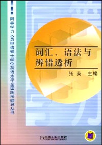 《词汇、语法与辨错透析》:无论是平时准备还是考前强化训练,词汇和语法知识都是必不可少的重要内容。本书编排提纲挈领、清晰了然:第一部分为语法答题指导,从词法与句法两个方面详略得当地对考试所要求的知识点进行了归纳整理,特别突出了重点和难点;第二部分的词汇答题指导对120组易混淆的近义词进行了辨析,并按词性分类,列举了近千个常用固定搭配;最后一部分为综合语法练习、词汇练习和辨错练习,难易适中,完全依据新版考试大纲设计。