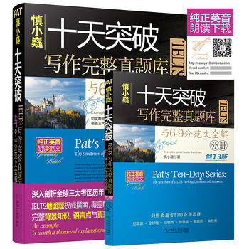 本书是留学英语考试语言专家慎小嶷(Pat)老师的力作。书中紧密结合剑桥大学出版社出版的“剑14”和《剑桥雅思官方指南》(The Official Cambridge Guide to IELTS)所体现出的*趋势,富有创造性地总结出了帮助中国考生突破IELTS写作瓶颈所需的全部应试技巧,并用地道英语对大量语言点进行了深入讲解。书中全部例句均取自*近两年中出版的英美本土出版物和剑8~剑14以及《剑桥雅思官方指南》里的权威官方范文。