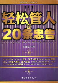 简介: 《轻松管人的20条忠告》管人要以情感人。中国人重感情、讲义气、要面子,管人就要做足人情、给足面子,这样下属才会死心塌地为你付出。管理者要学会给下属留面子,给下属面子,实际上是工作的需要,也是管理者赢得面子的需要。以情感人就不要摆架子,领导“架子”越大,官气越足,员工就越反感,与下属的距离就越远,就会影响工作的开展。要想实现成功管理,最简单、最重要的就是放下架子。讲人情是对制度、纪律的有效补充,可以达到贴近下属的管人目的。如果管理者不贴近下属、关心下属,就不会了解下属的一些需求.以至做事我行我素,只懂得下达命令,缺乏必要的“人情味”,这样的管理者是不会受欢迎的。当然,也就管不好人。