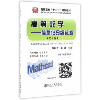 简介: 赵明才、姜晓主编的《高等数学——信息化分级教材》为高职高专类高校公共基础课教材,内容共7章,包括极限与连续、导数与微分、导数的应用、不定积分、定积分、线性代数、概率与数理统计等章节。本教材按教学要求每节都设置了习题,每章都设置了复习题。本教材的特点是在讲授高等数学的知识体系的基础上,根据高职高专类高校重点培养应用型、技能型人才的需要,重点讲授了高等数学在工程实践中应用的方法,以及与其相关的工程软件的使用。本教材十分适合各类高职高专类院校“高等数学”教学使用,有广泛的实用性和应用性。