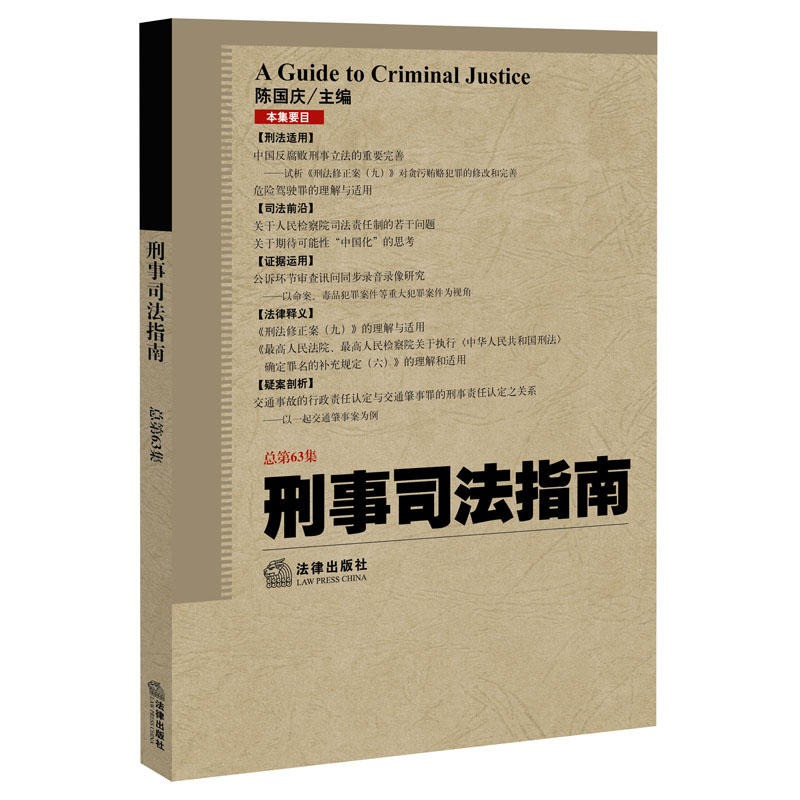 简介: 《刑事司法指南》是最高人民检察院公诉厅编写、陈国庆主编、法律出版社出版的刑事犯罪理论与实务指导丛书,属于法律出版社法律应用出版分社规划的法院、检察院司法实务系列用书之一。该书面向检察院系统,针对刑事案件的监督、提起公诉和自侦自查,在刑法理论、刑事司法实务方面全面研究、反映司法改革、司法建设、司法发展的动态与成果,追击并剖析刑事司法领域最新问题。