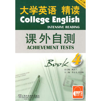 本书针对教材的每两个单元编写两套同步测试题,每套测试题分A、B两份卷子。听力部分参照每册对应听力教材水平,按照四级听力题型编写。内容包括短对话、长对话、短文理解及复合式听写。词汇结构部分以复习、巩固该单元词汇、短语搭配及语法结构为主,以复习部分已学过的大纲四级词汇为辅。阅读理解部分有四篇文章,分为快速阅读理解和仔细阅读理解。文章内容具备思想性、科学性、知识性。选用了反映现代科技、人生哲理等比较新的阅读材料。综合复习测试形式包括完形填空、改错、句子翻译和篇章问答。其中完形填空部分以练习词汇和词组搭配为主,语法句法结构和上下文关系衔接为辅。改错部分有两种考查形式:在句子的划线部分找错并改正;在短文中找错并改正。句子翻译紧密结合相关单元的句型和短语,反复操练单元中的表达方式,力求牢记。考查内容涵盖多方面:词汇用法、词组搭配、句法知识、语法知识、特殊句型、代词用法等。写作部分要求结合该单元主题,并尝试用已经学过的各类知识练习写作。