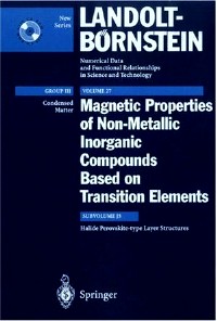 简介:The magnetic properties of halides have been compiled in subvolume 27J. The third part, 27J3, contains data on structural and magnetic properties of halide perovskite-type layer structures of the types A2MX4 (monolayer compounds), A3M2X7 (double-layer) and A4M3X10 (triple-layer) where X=F-, Cl-, etc.; M=Mg2+, Cr2+, Mn2+, Zn2+, Cd2+, etc.; and A=K+, Rb+, Cs+, etc. In addition, for X=Cl- and Br- data are presented on compounds where the alkali ions are replaced by n-alkylammonium chains, and also for diammonium compounds where two alkali ions are replaced by divalent alkylene-diammonium ions. A brief sketch of the theory of phase transitions and of the relevant models (2D Ising model, 2D XY-model, 2D Ising spin glass) is also given as well as a comprehensive selection of data on critical properties near the phase transitions.