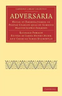 简介:Edited from Porson's notebooks by two of his Cambridge colleagues, Adversaria was published posthumously in 1812. It includes Porson's prelection (delivered when he was a candidate for the Regius Professorship of Greek) and notes and emendations to his monumental edition of Euripides as well as to editions of other Greek writings. Among his contributions to nineteenth-century classical scholarship was the discovery of a rule relating to the position of words in Greek trimeters which is still known as Porson's law. His scholarly style, which focused on metre and language rather than interpretation, set the standard for classical textual criticism at Cambridge for several decades. One of Porson's legacies was the design of a Greek typeface based on his handwriting, commissioned from Richard Austin by Cambridge University Press. 'Porson Greek' was widely used in British publications for well over a century.