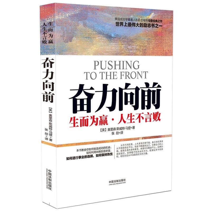 简介:《敢冲,才不枉青春》内容简介:成功学大师博恩?崔西讲过这样一个故事:在令人绝望的经济大萧条期间,马登赖以为生的酒店破产了,在清算之后,他只剩下微薄的一点积蓄。无所事事的马登决定转行,写一本书,以求东山再起。他在一家小酒馆订了一个房间,开始夜以继日地工作。写完最后一页的时候,辛苦一年的马登又累又饿,他下楼去街角的咖啡馆吃饭。正在这时候,小酒馆起火了,只是几分钟,马登的手稿全部化为灰烬!马登的心都碎了。但是马登没有放弃,他很快就打起精神,决定再写一遍。又是一年,马登再次完成了他的手稿。当马登把手稿送给出版商时,出版商却拒绝出版。此后马登又拜访了无数的出版商,仍然找不到人出版他的著作。无以为生的马登只好先找了一份工作,工作之余继续推销他的著作。整整三年之后,马登才终于找到了一位出版商愿意出版。