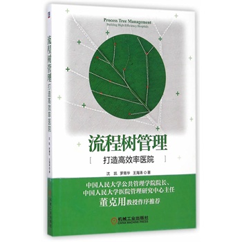 简介: 沈凯、罗青华、王海涛编著的这本《流程树管理 (打造高效率医院)》结合医院管理的理论基础和实际 经验,引入了一个新概念——流程树管理。 流程树管理把医院的主要运营发展情况分成若干 流程线,以医疗服务为主干,其余为辅干,然后把它 们关联起来做出了一个医院发展的管理脉络。通过精 细化管理、成本管理、薪酬管理、岗位管理、流程管 理、考评管理等方法,旨在改进医院的医疗质量和服 务水平,提升工作效率,增强核心竞争力,保证医院 可持续发展。