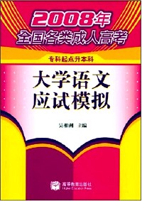 简介: 为了帮助广大考生复习备考,我们根据教育部2007年1月颁布的《全国各类成人高等学校招生复习考试大纲(专科起点升本科)所规定的考试内容及要求,组织作者编写了这套《2008年全国各类成人高考(专科起点升本科)应试模拟》。 《大学语文应试模拟(专科起点升本科)》具有以下几个特点:1、内容完整,重点突出,本套书严格按照大纲所规定的题型,内容和难易比例编制,全面覆盖考试大纲的知识点。2、解渴实用,针对性强。在每套模拟试卷后,不仅给出了参考答案,而且还设有解题指导,即扼要指出该题所考查的能力、解题方法及考生解题时应注意的问题等,这对考生通过做题而举一反三、融合贯通地掌握所学知识,将起到良好的的作用。3、名师荟萃,质量可靠。