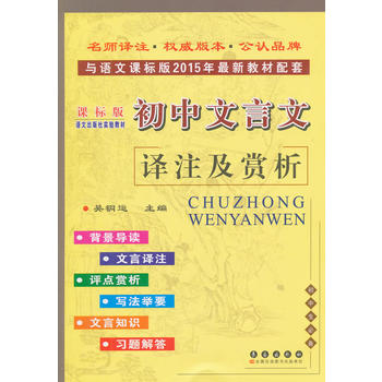 随着素质教育的推进和中学语文教学改革的深入,中学语文教材做了很大的调整,许多脍炙人口的文言文被充实到教材中,语文教学越来越重视文言文阅读和理解能力的培养。但是,文言文毕竟是古代的作品,与现代汉语有很大区别,所以,多数中学生视学文言文为畏途,部分青年教师在教学时也存在一些困难,他们迫切需要一部与中学教材配套的普及性读物。鉴于此,我们组织了一批有丰富教学经验的特、高级中学教师,编写了这套系列《初中文言文译注及赏析》。