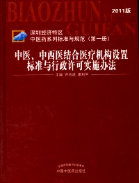 (2011年版),分为三册,第一册为《中医、中西医结合医疗机构设置标准与行政许可实施办法》,第二册为《中药饮片与方剂编码规则及其应用》,第三册《中药处方与调剂技术规范》。本书为《中医、中西医结合医疗机构设置标准与行政许可实施办法》(以下简称《设置标准与行政许可办法》),主要内容包括:中医馆和中医坐堂医诊所的基本标准;中医馆和中医坐堂医诊所的设置行政许可实施办法;中医、中西医结合医疗机构设置规范;中医、中西医结合诊所和门诊部的设置行政许可实施办法;中医、中西医结合医院的设置行政许可实施办法;其他相关文件(包括香港、澳门特别行政区医师在内地短期行医执业注册等)六个部分。
