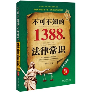 简介: 为了让广大读者*方便、*快捷且*全面地学习法律知识,学会用法律的武器来保护自己和解决问题,徐宪江特编写了《不可不知的1388个法律常识(实用问答版增订6版)》,并赋予其如下特色: **,内容全面。本书内容涉及人权保障、人身利益、生老病死、婚姻家庭、生活消费、交通出行、财产保护、合同权益、劳动就业、教育培训、社会保险、商业保险、创业投资、知识产权、违法犯罪、行政利益、诉讼等领域,全面完整地涵盖了人们在生活中常见的法律问题。 ” 第二,简单易懂。本书以提问的方式引出法律问题,结合相关法律规定进行准确解说。简单易懂。一目了然。 第三,语言通俗。本书以通俗浅白的大众语言传达法律知识,具有较强的通俗性和普及性。 *后,便于查阅。如果读者想找某一法律问题,通过目录就能很快地找到,省时省力。 希望广大读者能够通过本书,真正地成为一名“ 法律人”,从而在。遇到法律问题时能够以*快捷、 *经济、*实用的方式去解决。在面对各种性质的利益纷争及侵权行为时,能够有理有据地拿起法律武器,维护自己的合法权益。