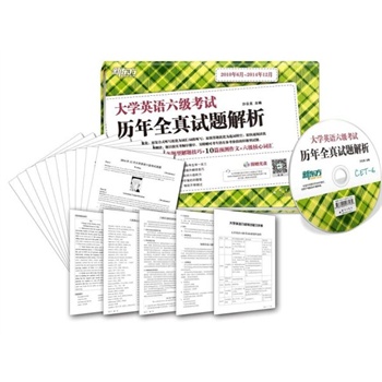 简介: 《大学英语六级考试历年全真试题解析》汇集最新的10套六级真题,按照最新考试大纲对以往真题进行全面优化:原复合式听写优化为词汇/词组听写;原简答题优化为选词填空;原快速阅读优化为长篇阅读;增加段落翻译;题目按实考顺序排序。另附赠对考生仍有参考价值的旧题型试题。 所有题目均配答案及详细解析,阅读附全文翻译,帮助考生轻松把握命题规律。 本书包括10本试卷、一本解析册、一本复习手册。复习手册中包括考试流程介绍、题型分析、六级常考核心词汇&词组及常考作文话题预测,结合大纲和真题示例归纳了答题方法和要点。 听力光盘中除了包含本书配套听力音频,更有新东方名师对各题型的精彩音频点评。附赠光盘中的听力音频也可登录封面上提供的地址免费下载或扫描二维码在线播放。 真题全面优化,试卷独立包装 历年六级真题试卷,按照新题型进行优化,附有实考录音,为考生提供高度仿真的练习和模考环境。 各套试卷独立装订,解析与试卷独立装订,方便考生根据复习需要随需随取,也方便老师组织课堂模考。 解析详尽严密,阅读译文精准 题目解析由新东方一线授课教师精心编写,明示设题难点,详析答题思路,帮助考生明确考查动机,规避错项陷阱。 对于可能造成阅读障碍的长篇阅读和深度阅读部分,附准确的全文翻译,帮助考生掌握行文的脉络,扫除理解上的障碍。 全方位的题目讲解 针对各题型的具体特点采用不同的讲解方式,既有提纲挈领的篇章结构分析,又有细致入微的解题思路点拨以及词汇、词组拓展。 赠品丰富实用,音频点评精彩 随试卷附赠的复习资料包括考试流程介绍、题型分析、词汇&词组及常考作文话题预测,结合大纲和真题示例归纳了答题方法和要点,精选六级常考核心词汇和词组,精编10篇预测范文,详细讲解审题、写作思路,附有范文点评和译文。 听力光盘中除了包含本书配套听力音频,更有精彩的音频点评,由新东方老师亲自讲授六级考试各题型的审题思路和解题技巧,让考生足不出户就可以领略新东方六级课堂风采。