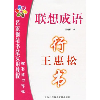 简介:由全国著名硬笔书法家王惠松先生编著的“名家钢笔书法实用教程”丛书自去年出版以来,受到广大硬笔书法受好者的青睐,其中《王惠松楷书》和《王惠松行书》已重印。为此,我社邀请王惠松先生编写了这套“名家钢笔书法实用教程配套练习字贴”。楷书、行书各3册,内容选辑为呼应成语、联想成语、分类成语。 该套系列字帖采用描红方式编印,将摹、临、描3种方法结合起来。读者在使用时,先在备好的透明纸上摹写,然后再在自备的纸张上临习,最后用钢笔在字帖上描红,以巩固习字效果。经过反复练习,读者自会心手双畅,练就一手漂亮潇洒的硬笔书法。