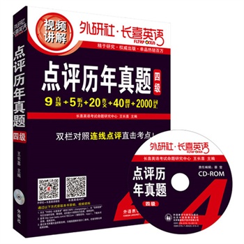 简介: 《长喜英语:大学英语四级考试-点评历年真题(四级)备战2015.12(配光盘)》属于外研社长喜英语系列产品,由四六级考试名师王长喜老师精心编写,供备考大学英语四级考试的考生使用。《长喜英语:大学英语四级考试-点评历年真题(四级)备战2015.12(配光盘)》内含: (1)9套**全真试题 (2)四级2000高频词手册(含新增词汇、熟词生义、高频词汇、常用词汇、高频短语) (3)抢分热点集训“赢”手册,包括20篇预测作文——命题紧跟社会热点,提供精彩高分范文;40篇热点翻译——遵循四级命题规律,覆盖历史、文化、经济、社会发展等常考点;5套标准听力——录音地道语速标准,考前热身**选择 (4)1张CD-ROM,包括历年真题听力(MP3)、5套标准听力(MP3)、5套标准听力解析(PDF)、四级答题卡(PDF)、四级考场指令(PDF)