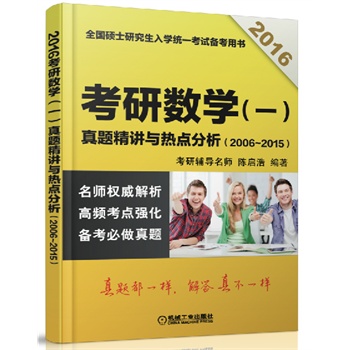 简介: 本书是全国硕士研究生入学统一考试备考用书. 主要内容包括2006年到2015年十年的考研数学一的真题及其精讲以及对考试热点问题的分析. 本书适合参加全国硕士研究生入学统一考试“数学一” 的同学阅读,也可作为教师的参考。