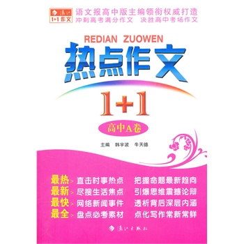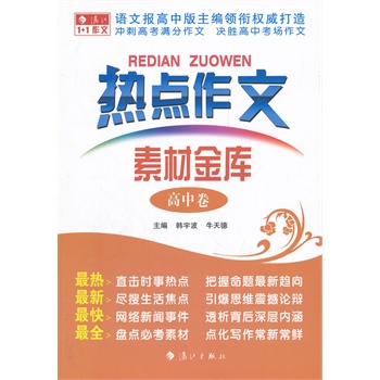 简介: “热点作文1+1”系列首批推出《热点作文1+1高中A卷》《热点作文1+1高中B卷》《热点作文素材金库高中卷》《热点作文1+1初中A卷》《热点作文1+1初中B卷》《热点作文素材金库初中卷》6种。热点类作文以当前社会的热点事件为话题,围绕课标和考纲设题,富有鲜明的时代感,从人物、事件、影视、体坛、生活、科技、自然、锐词、教育、经济、文化等11个热点板块入手编排了88个具有代表性的热点话题,对每个话题进行透视分析和写作指导,为广大中学生提高作文分数肋力,成为笑傲考场的高手!素材金库汇集全国一线名师精心打造,涵盖16个主题,300多个热点、焦点素材,450多个活用角度,精彩灵动的“点读”和“活用”,为学生呈现了“必考素材——快速妙用——拓展运用”,是获取高分作文的快捷通道。