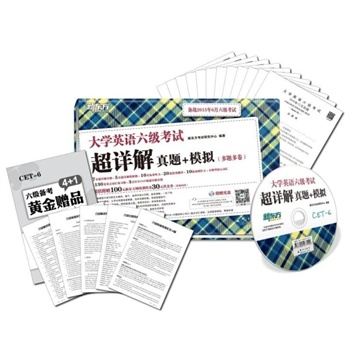 简介: 《大学英语六级考试历年全真试题解析》汇集最新的10套六级真题,按照最新考试大纲对以往真题进行全面优化:原复合式听写优化为词汇/词组听写;原简答题优化为选词填空;原快速阅读优化为长篇阅读;增加段落翻译;题目按实考顺序排序。另附赠对考生仍有参考价值的旧题型试题。 所有题目均配答案及详细解析,阅读附全文翻译,帮助考生轻松把握命题规律。 本书包括10本试卷、一本解析册、一本复习手册。复习手册中包括考试流程介绍、题型分析、六级常考核心词汇&词组及常考作文话题预测,结合大纲和真题示例归纳了答题方法和要点。 听力光盘中除了包含本书配套听力音频,更有新东方名师对各题型的精彩音频点评。附赠光盘中的听力音频也可登录封面上提供的地址免费下载或扫描二维码在线播放。 真题全面优化,试卷独立包装 历年六级真题试卷,按照新题型进行优化,附有实考录音,为考生提供高度仿真的练习和模考环境。 各套试卷独立装订,解析与试卷独立装订,方便考生根据复习需要随需随取,也方便老师组织课堂模考。 解析详尽严密,阅读译文精准 题目解析由新东方一线授课教师精心编写,明示设题难点,详析答题思路,帮助考生明确考查动机,规避错项陷阱。 对于可能造成阅读障碍的长篇阅读和深度阅读部分,附准确的全文翻译,帮助考生掌握行文的脉络,扫除理解上的障碍。 全方位的题目讲解 针对各题型的具体特点采用不同的讲解方式,既有提纲挈领的篇章结构分析,又有细致入微的解题思路点拨以及词汇、词组拓展。 赠品丰富实用,音频点评精彩 随试卷附赠的复习资料包括考试流程介绍、题型分析、词汇&词组及常考作文话题预测,结合大纲和真题示例归纳了答题方法和要点,精选六级常考核心词汇和词组,精编10篇预测范文,详细讲解审题、写作思路,附有范文点评和译文。 听力光盘中除了包含本书配套听力音频,更有精彩的音频点评,由新东方老师亲自讲授六级考试各题型的审题思路和解题技巧,让考生足不出户就可以领略新东方六级课堂风采。
